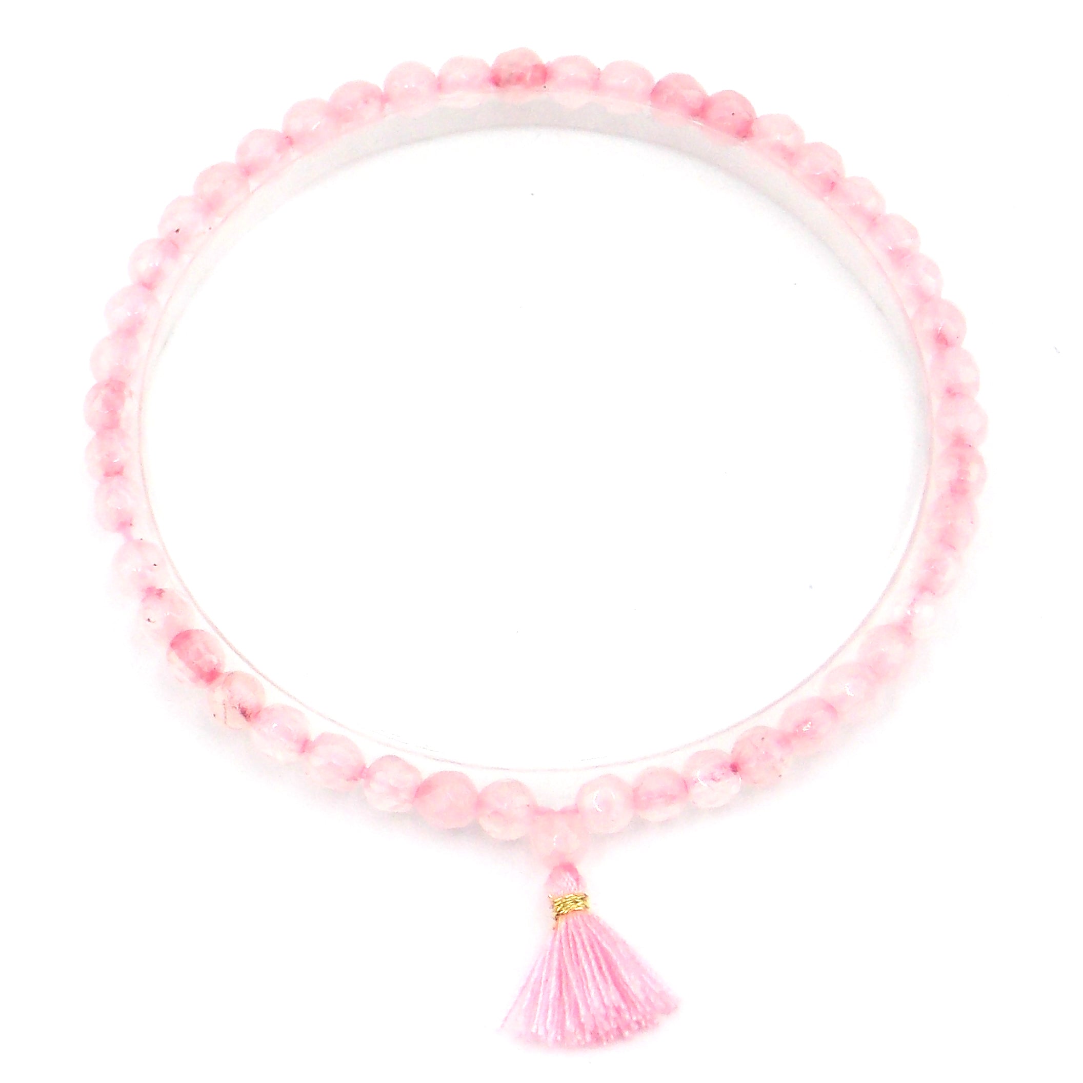 Pulsera de Cuarzo rosa facetada de 4mm con borla