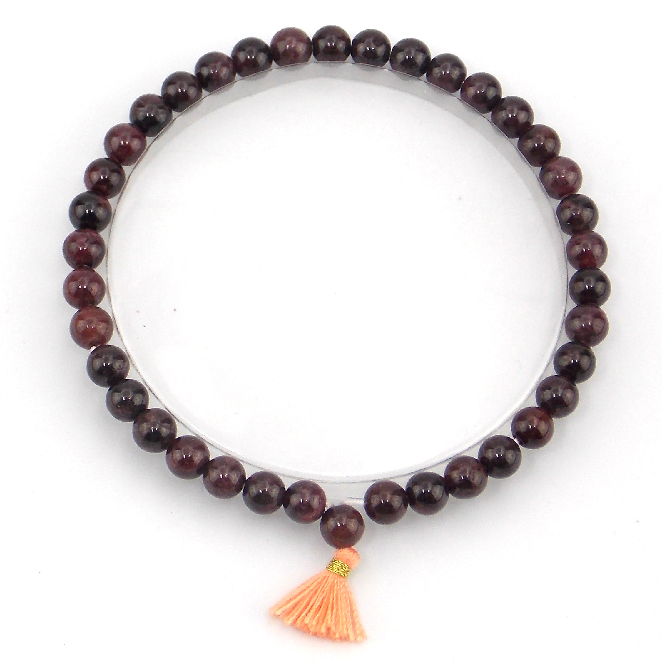 Pulsera de piedra natural de Granate de 4mm con borla