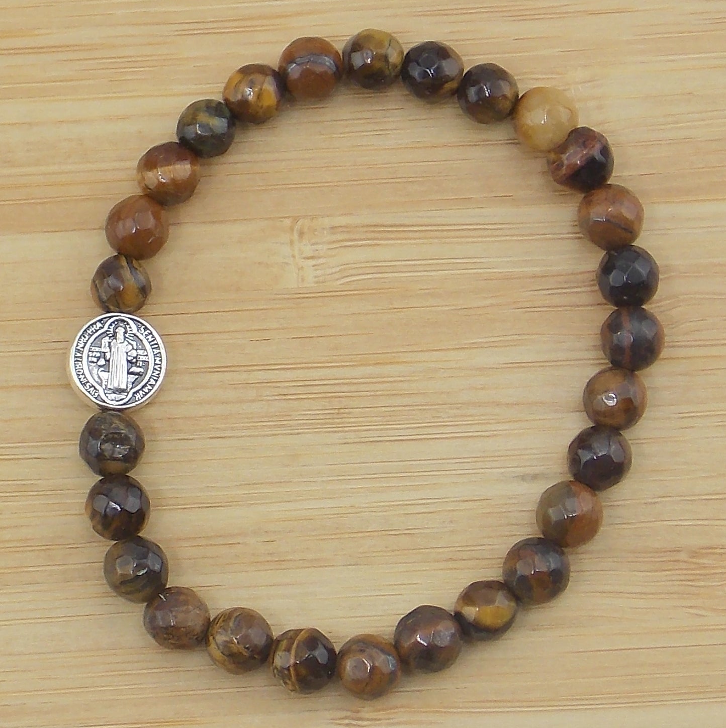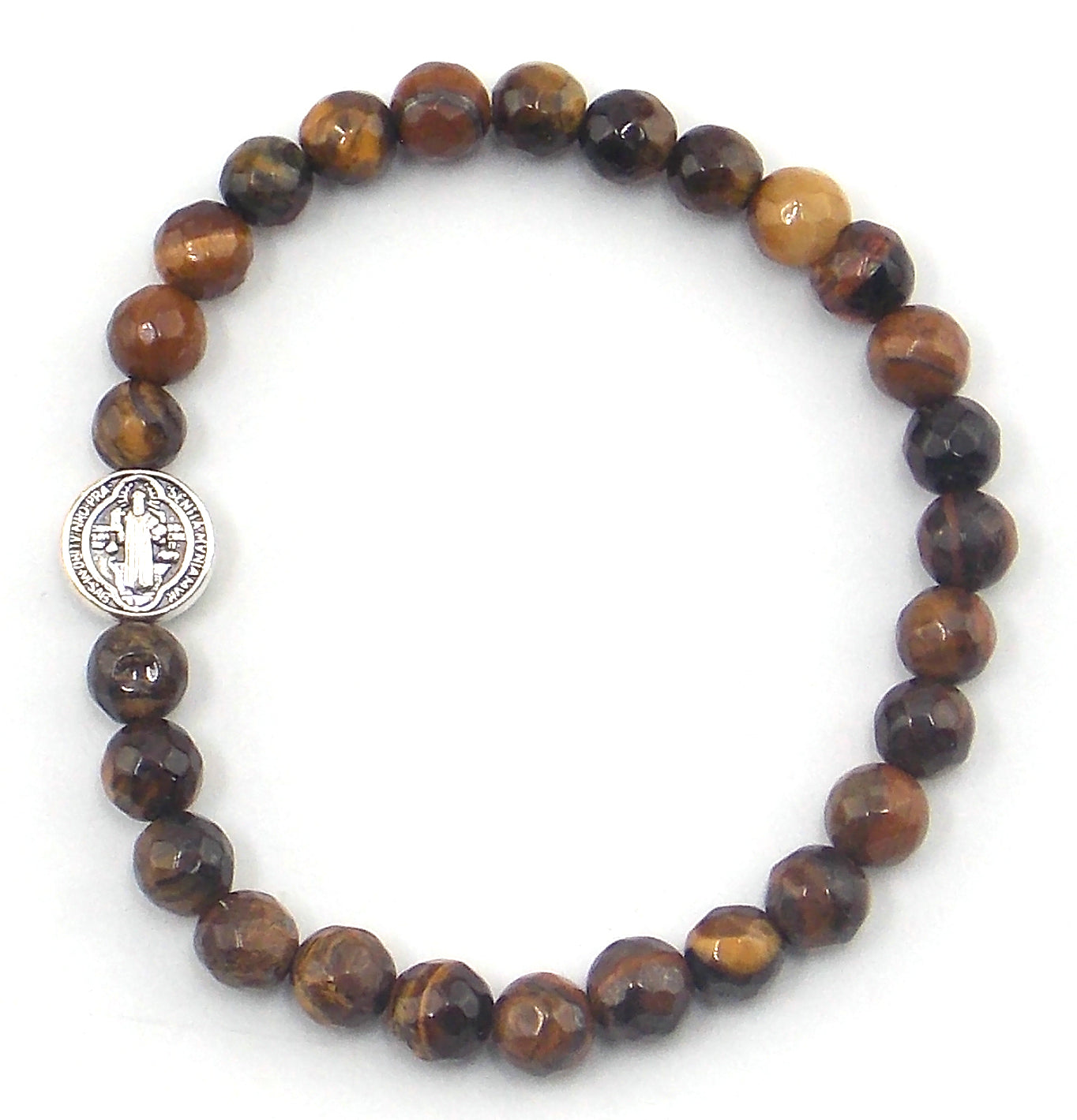 Pulsera de Ojo de Tigre facetado con San Benito